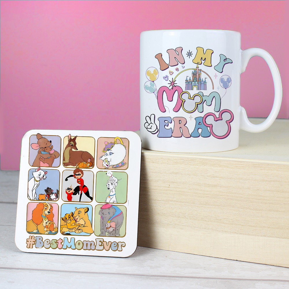 - Τετράγωνο ξύλινο σουβέρ με επίστρωση από πορσελάνη και υψηλής ποιότητας εκτύπωση, με μήνυμα: «Best Mom Ever» και πολλές αγαπημένες μανούλες της disney .
