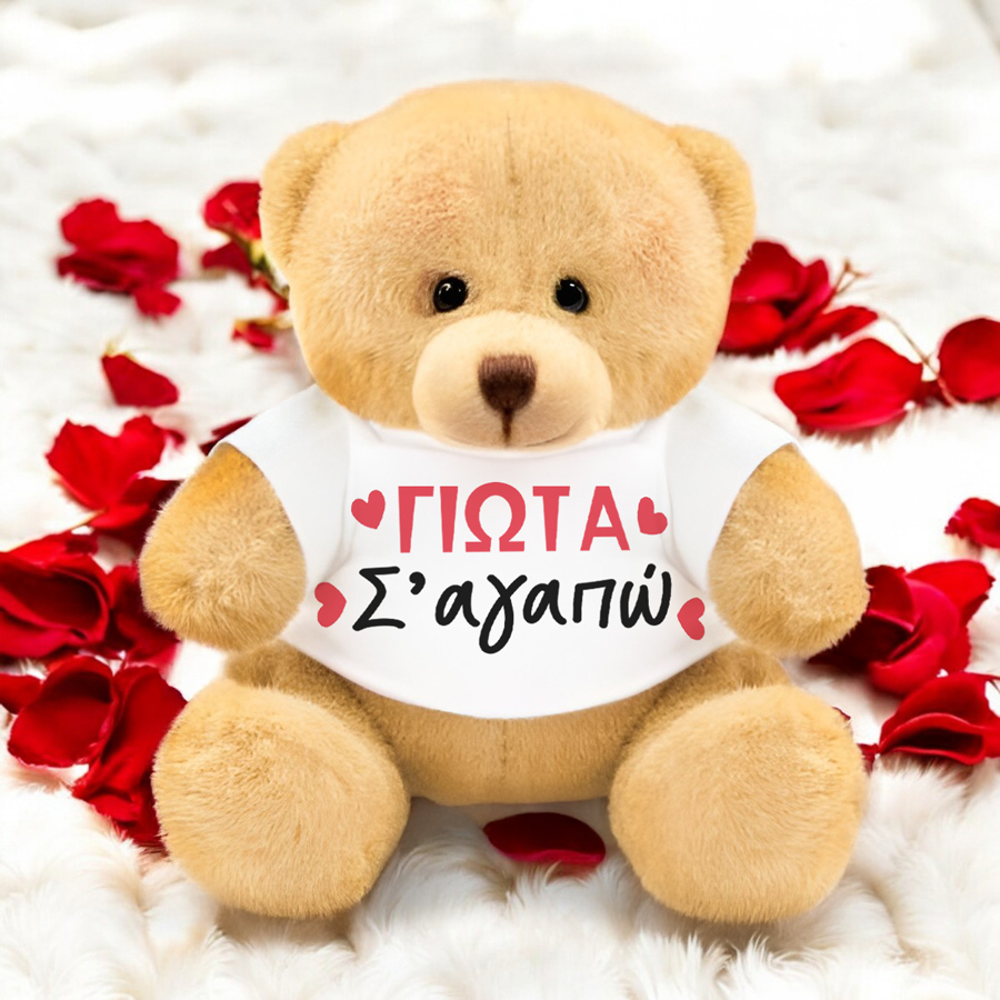 - 1 λούτρινο αρκουδάκι με T-Shirt με το όνομα της επιλογής σου τυπωμένο