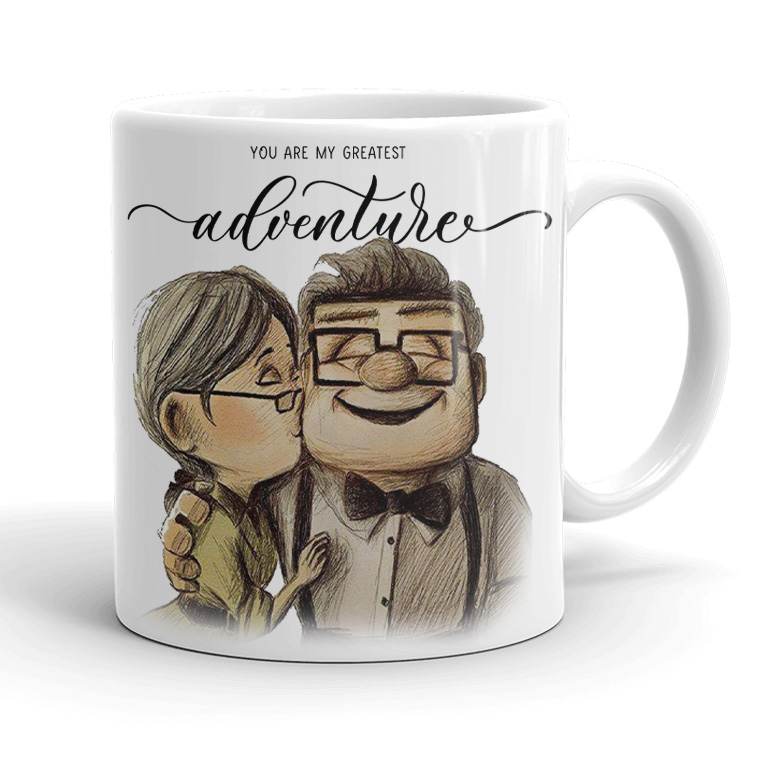 Κούπα με τον Carl και την Ellie από το Ψηλά στον Ουρανό και μήνυμα “You are my greatest adventure”.