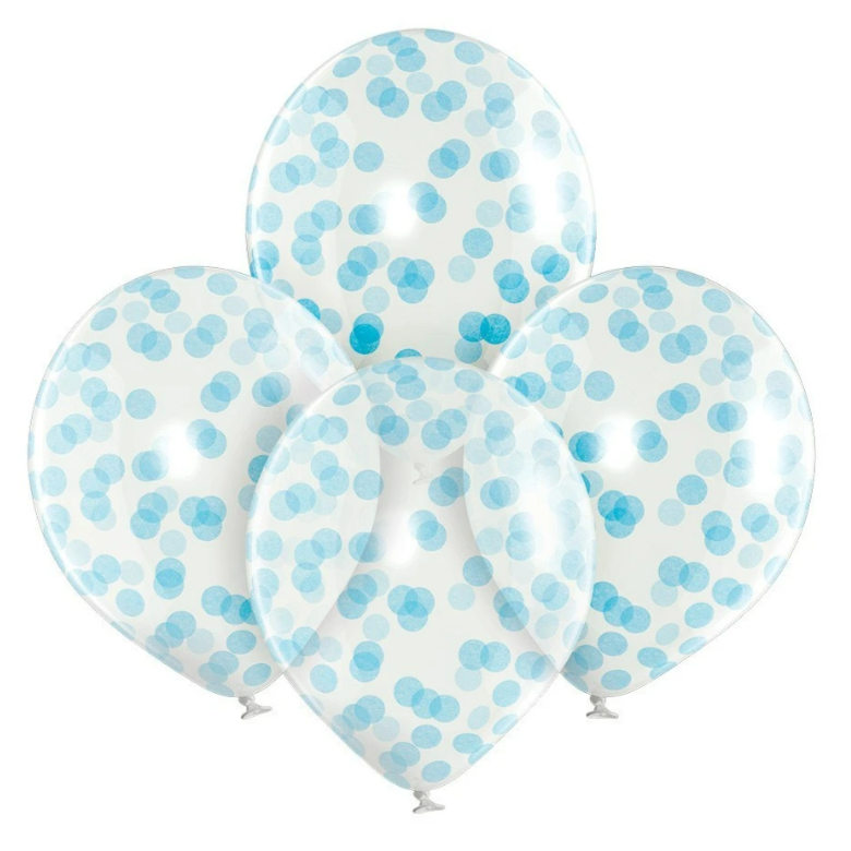 Σετ λάτεξ μπαλόνια διάφανα με γαλάζιο κομφετί, ιδανικά για την γέννηση, το baby shower ή την εκδήλωση!