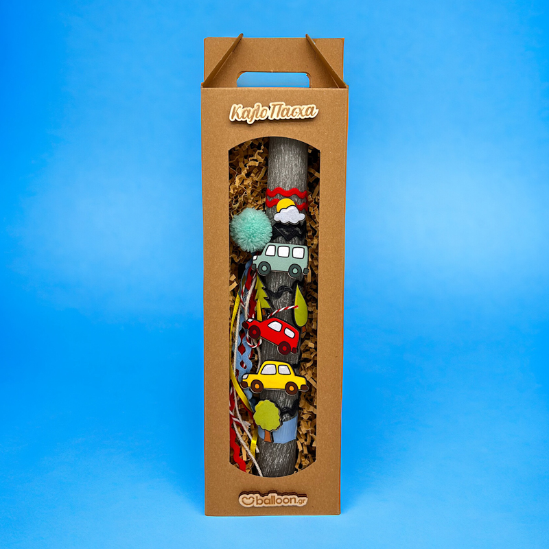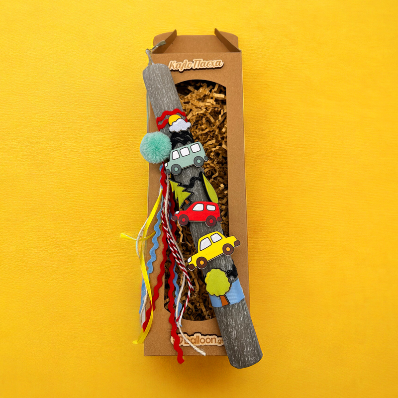 Πασχαλινή Αρωματική Λαμπάδα Αυτοκινητόδρομος, με υπέροχα υλικά και κορδέλες, που θα κλέψει τις εντυπώσεις!