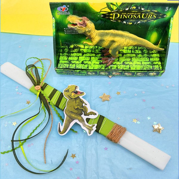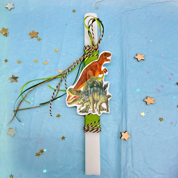 Χειροποίητη Πασχαλινή λαμπάδα με ξύλινο διακοσμητικό άγριοι Δεινόσαυροι!