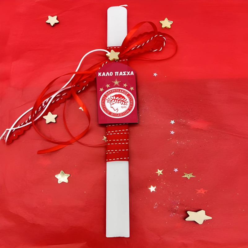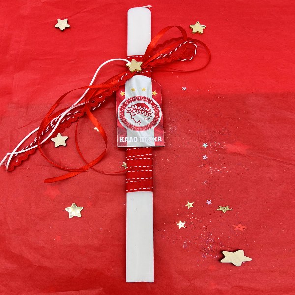 Πασχαλινή λαμπάδα Ολυμπιακός, με υπέροχα υλικά και κορδέλες που θα γεμίσει χαμόγελα νονούς και παιδιά!