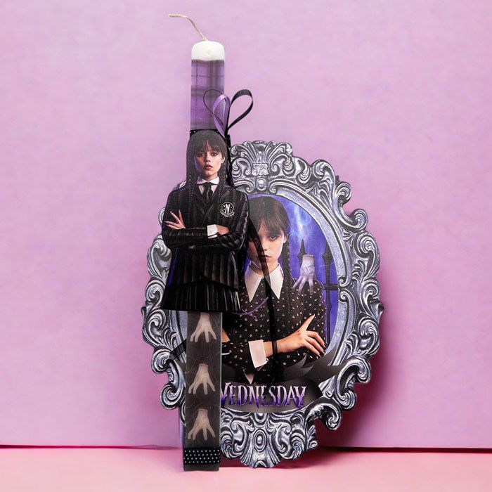 Εντυπωσιακή πασχαλινή λαμπάδα Wednesday Addams και μαζί ξύλινο κάδρο για το δωμάτιο!