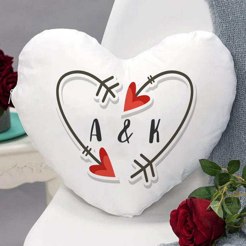 Προσωποποιημένο μαξιλάρι σε σχήμα καρδιάς με τα αρχικά μονογράμματα, για να χαρίσεις στο άλλο σου μισό!