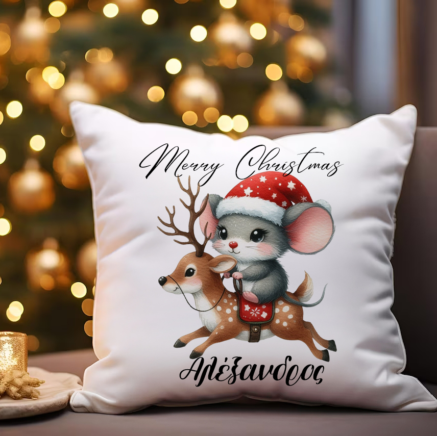 Μαξιλάρι Χριστουγεννιάτικο – Χαριτωμένο Ποντικάκι