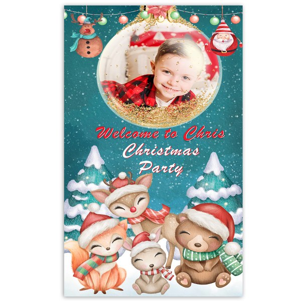 Μεγάλη διακοσμητική αφίσα με χαριτωμένα ζωάκια και εκτυπωμένη τη φωτογραφία του παιδιού, για να υποδεχθείτε τους καλεσμένους σας στο Χριστουγεννιάτικο πάρτυ!