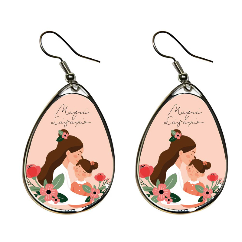 Μεταλλικά Σκουλαρίκια δάκρυ – Μαμά Σ’ αγαπώ