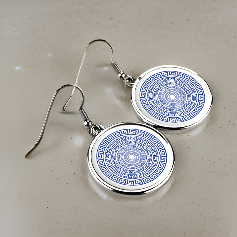 Μεταλλικά σκουλαρίκια στρογγυλά σε ασημί χρώμα με Αρχαιοελληνικό Μοτίβο, για να χαρίσεις ως δώρο ή να φορέσεις δημιουργώντας μια ξεχωριστή εμφάνιση!