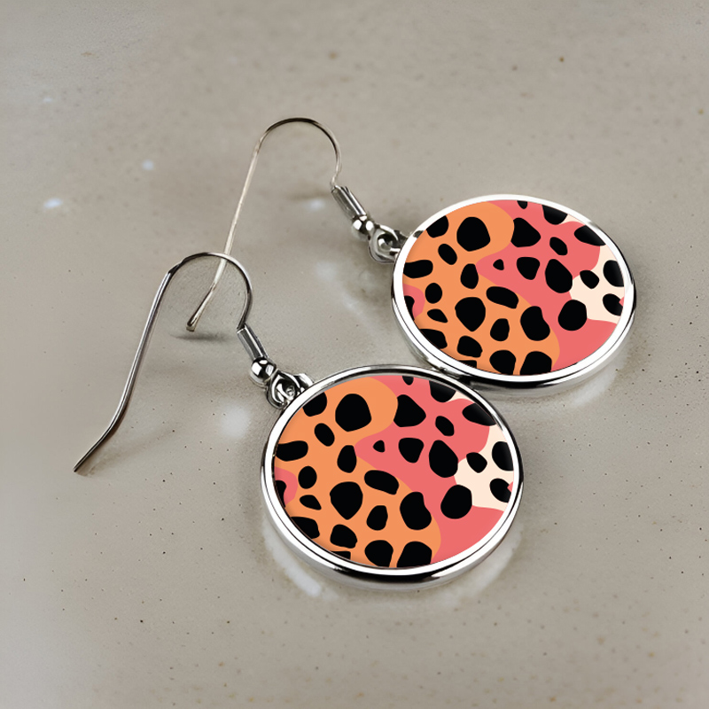 Μεταλλικά Σκουλαρίκια στρογγυλά Λεοπάρ Boho
