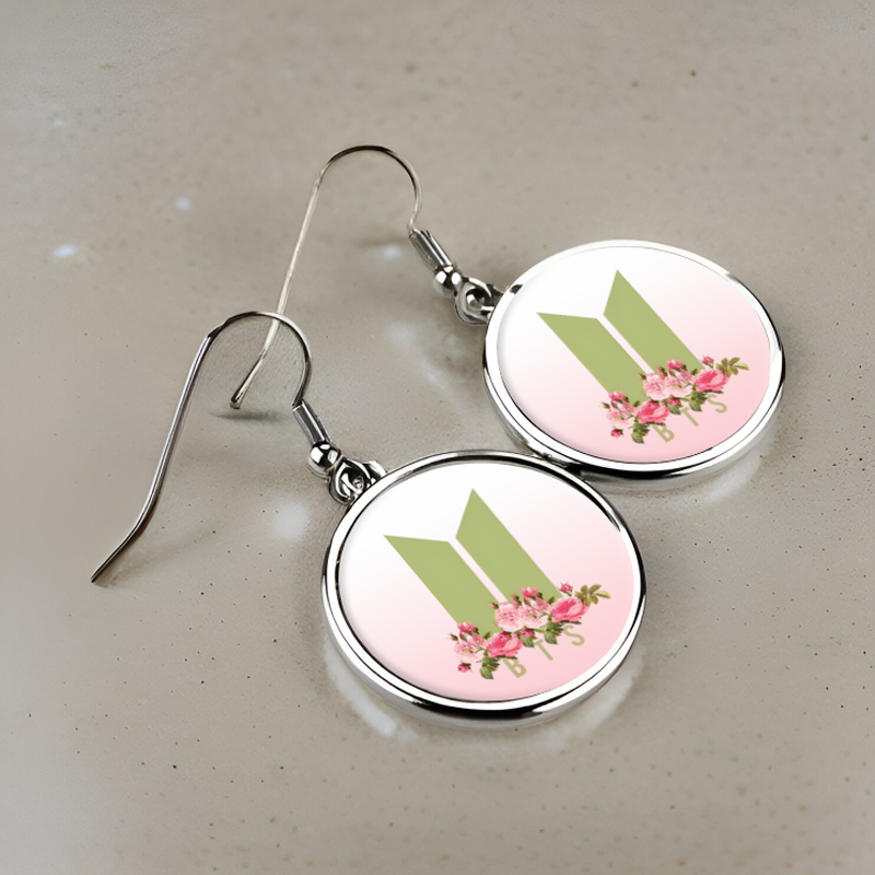 Μεταλλικά Σκουλαρίκια στρογγυλά – BTS φλοράλ