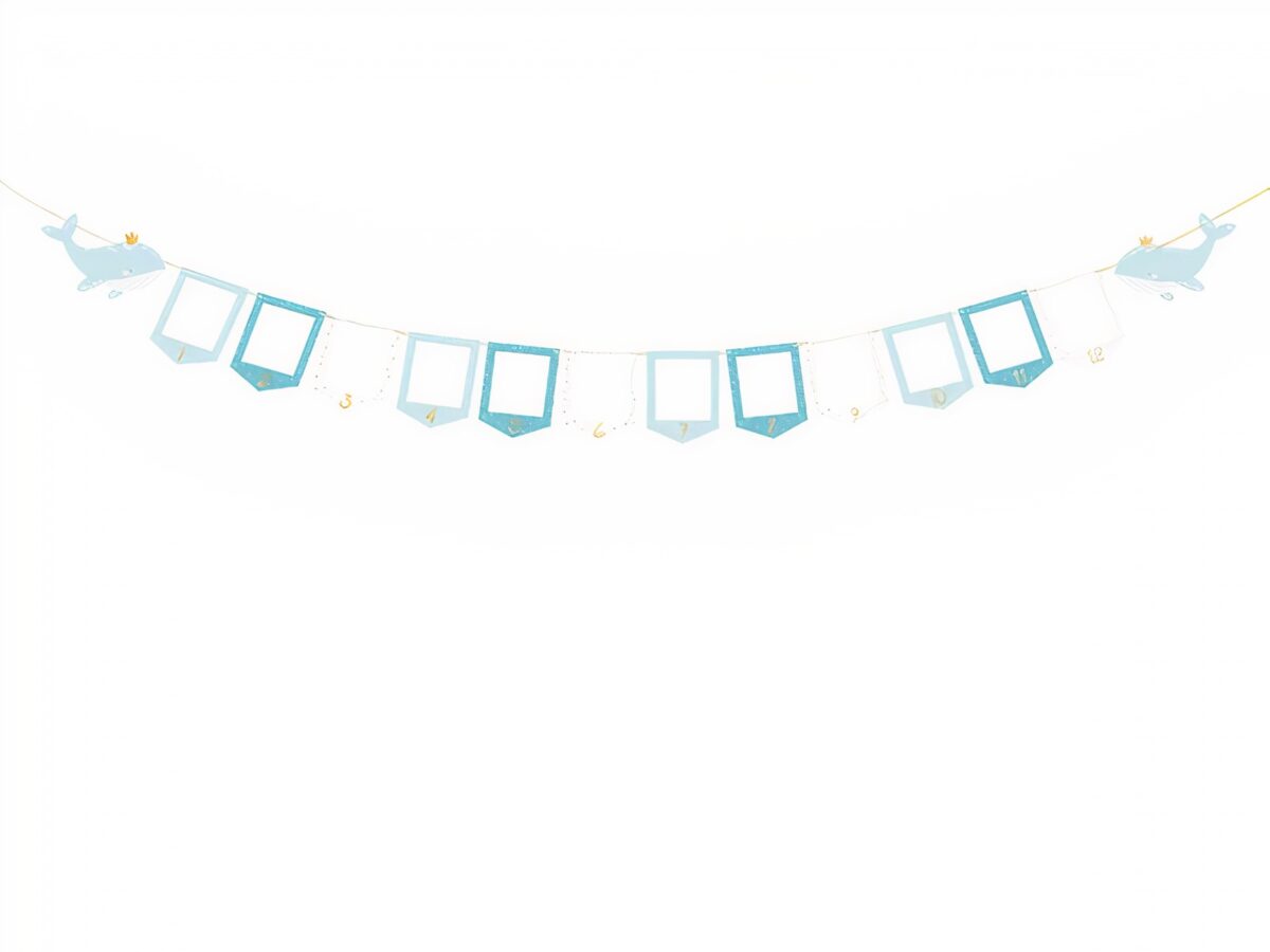 Banner – Photo Booth μπλε Φαλαινάκι: τοποθέτησε τις φωτογραφίες του μωρού σου, ανά μήνα, μέχρι να γίνει ενός έτους! Δημιούργησε έναν υπέροχο στολισμό στο πάρτυ ή το δωμάτιο με τις πιο γλυκιές αναμνήσεις!