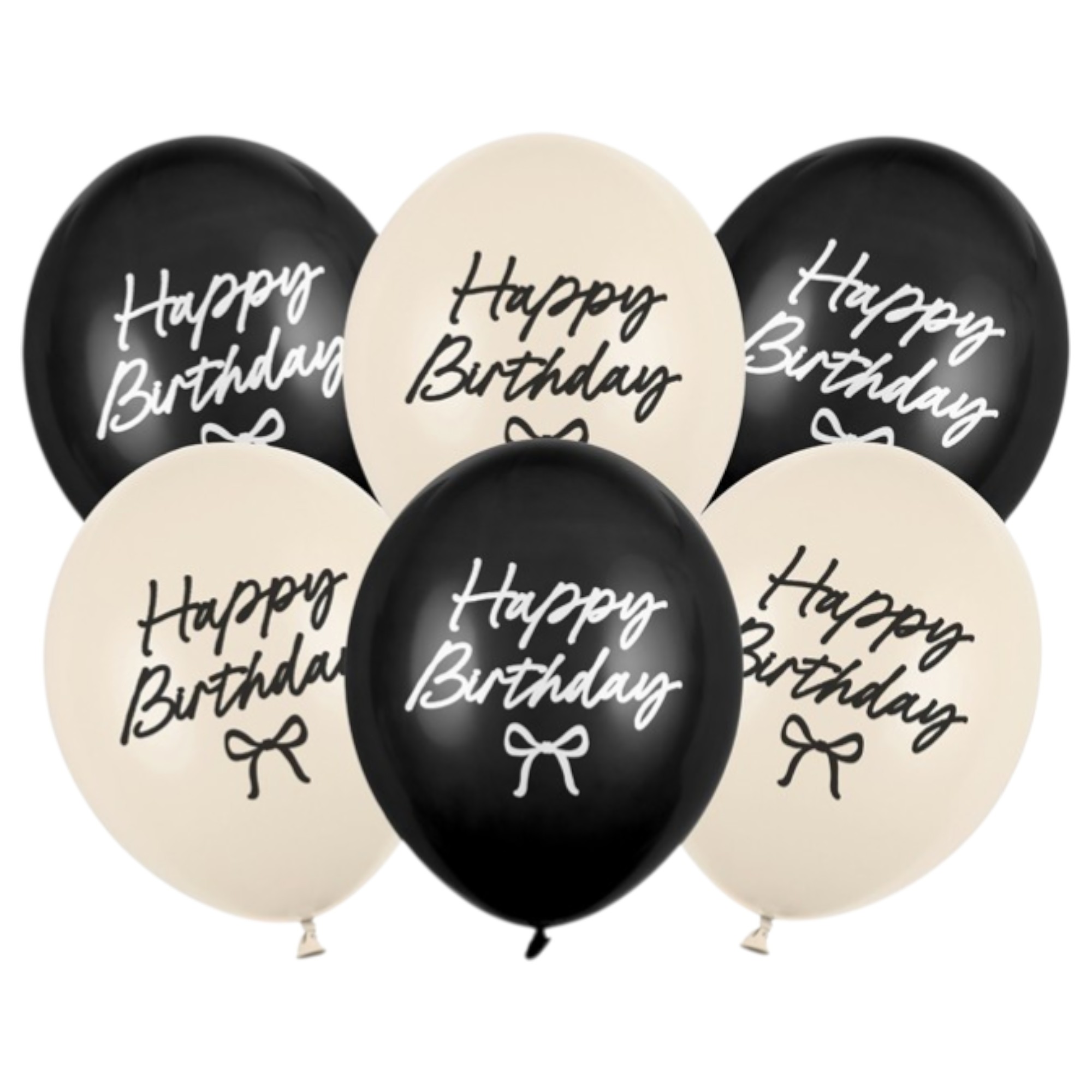 Μπαλόνια Happy Birthday με φιογκάκια Μαύρα & Nude (6 τεμ)