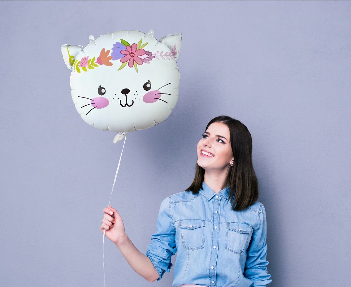 Εντυπωσιακό μπαλόνι χαρτιωμένη άσπρη γατούλα με στεφάνι από λουλούδια στο κεφάλι, για τη διακόσμηση του πάρτυ!