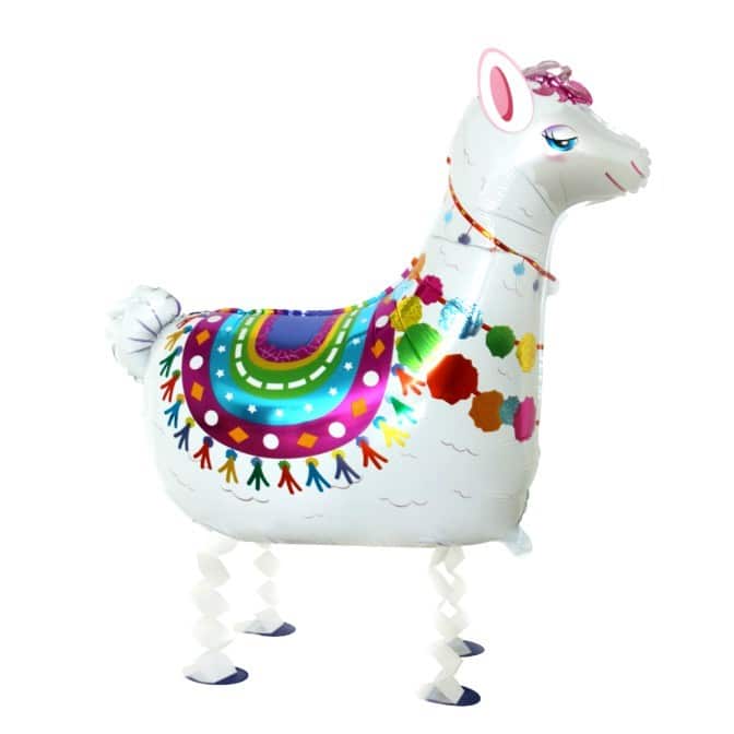 Ένα παιχνιδιάρικο μπαλόνι Λάμα με ζωηρά χρώματα και χαριτωμένη όψη. Είναι φτιαγμένο από αλουμινένιο υλικό με ενσωματωμένη βαρίδια στα πόδια και όταν φουσκωθεί με ήλιον στέκεται και μοιάζει να “περπατά” απαλά στο πάτωμα καθώς το τραβάς από το κορδονάκι. Με κάθε σου βήμα, το μπαλόνι κινείται χαρούμενα δίπλα σου, σαν να σ’ ακολουθεί παιχνιδιάρικα!