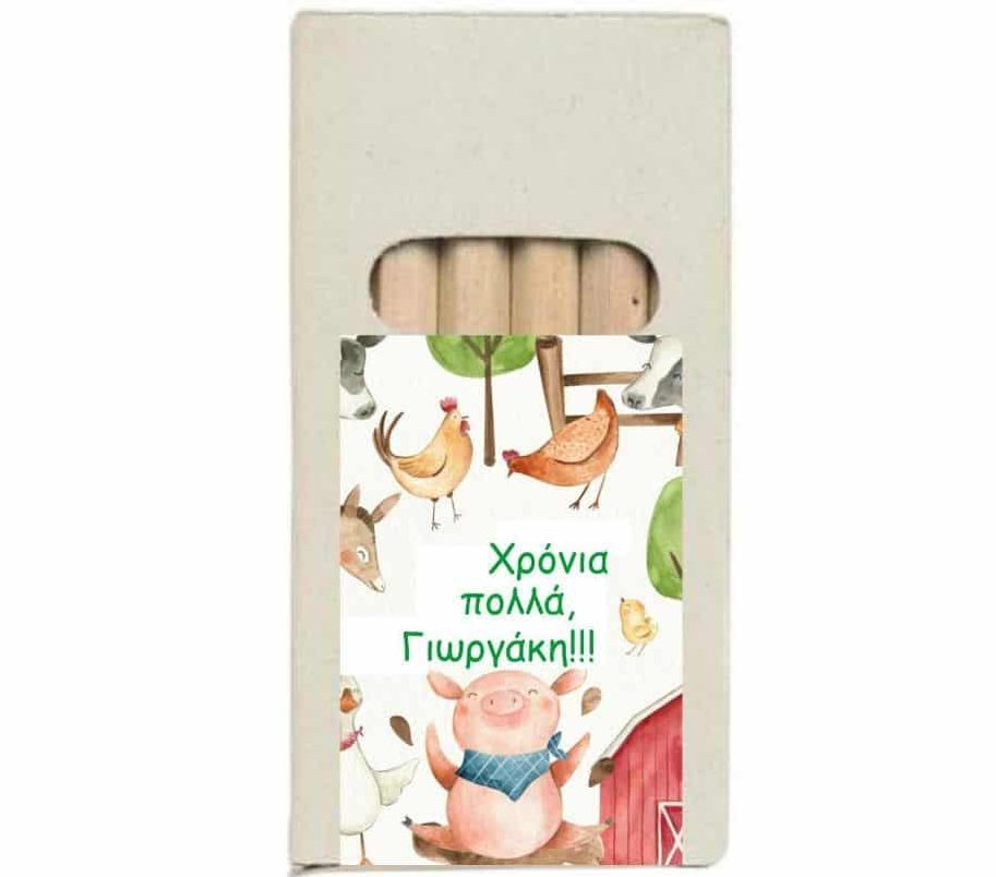 Χαρίστε στους μικρούς καλεσμένους του πάρτι, ένα δωράκι ξυλομπογιές με τα ζωάκια της φάρμας ! Μπορεί να τυπωθεί επάνω το όνομα του παιδιού!