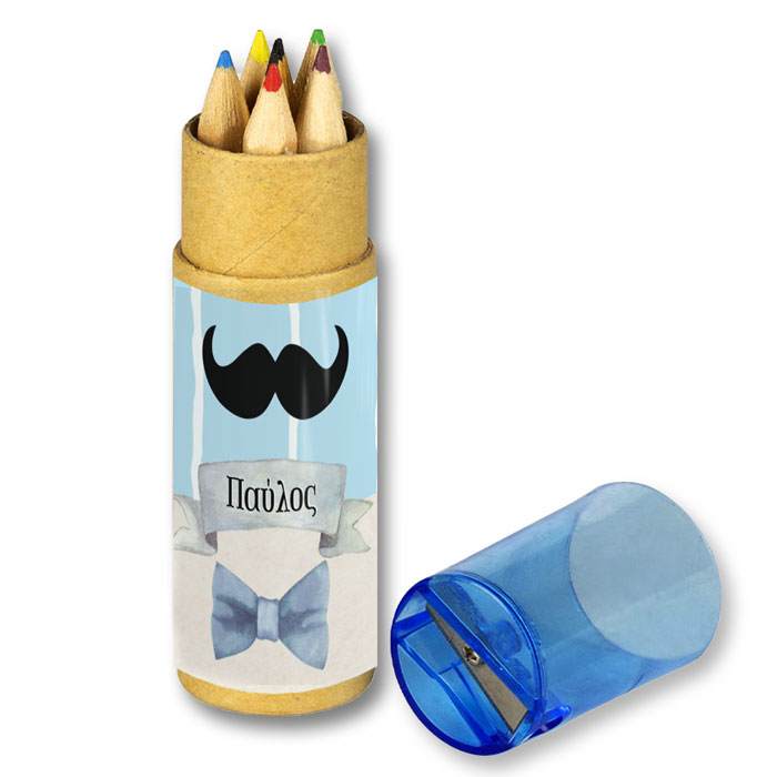 Χαρίστε στους μικρούς καλεσμένους του πάρτι ή της βάπτισης, ένα δωράκι με ξυλομπογιές στο θέμα Little Man. Μπορεί να τυπωθεί επάνω το όνομα του παιδιού.