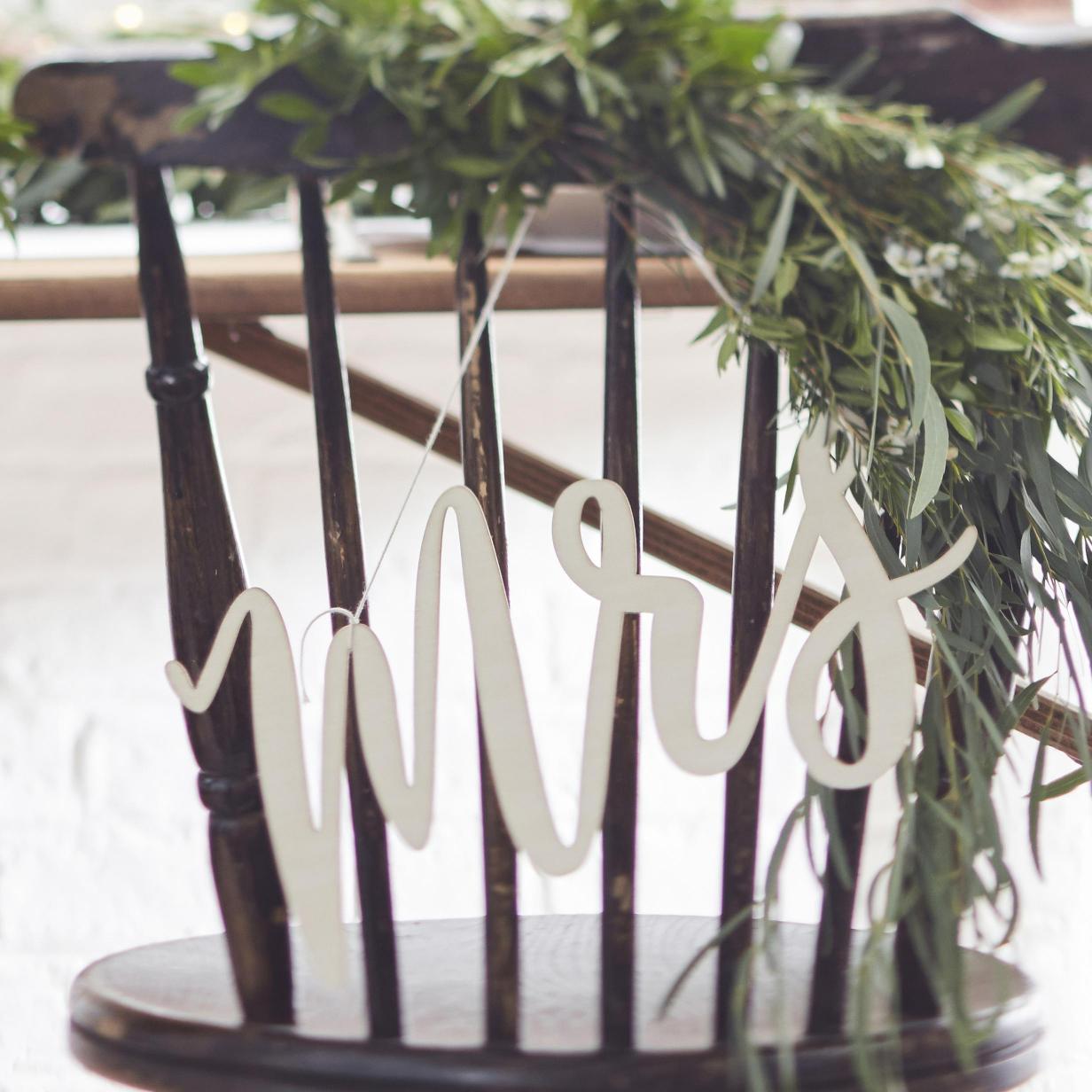 Ξύλινα διακοσμητικά Mr & Mrs, για τις καρέκλες των νεόνυμφων στο τραπέζι του γάμου!