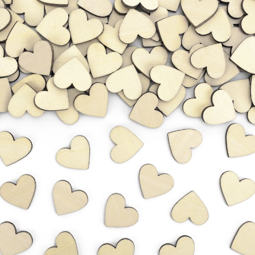 Ξύλινα confetti σε σχήμα καρδιάς, ιδανικά για να προσθέσετε ρομαντική και παιχνιδιάρικη πινελιά σε πάρτι, γάμους, βαπτίσεις ή διακοσμήσεις τραπεζιού.