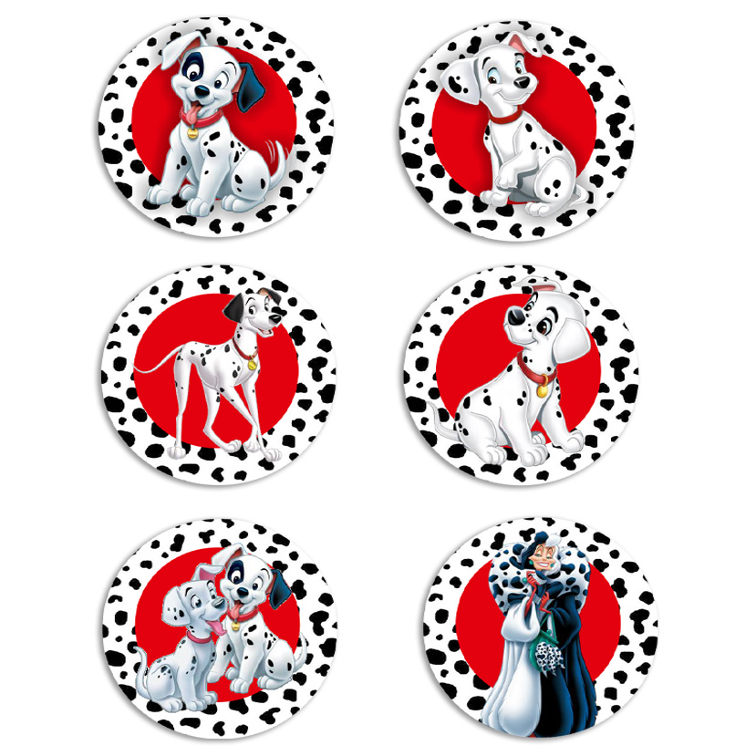 Κονκάρδες με τους ήρωες από τα σκυλάκια της δαλματίας, ιδανικές για δωράκι στους καλεσμένους ή για να διακοσμήσετε με αυτές τα αγαπημένα σας αντικείμενα!