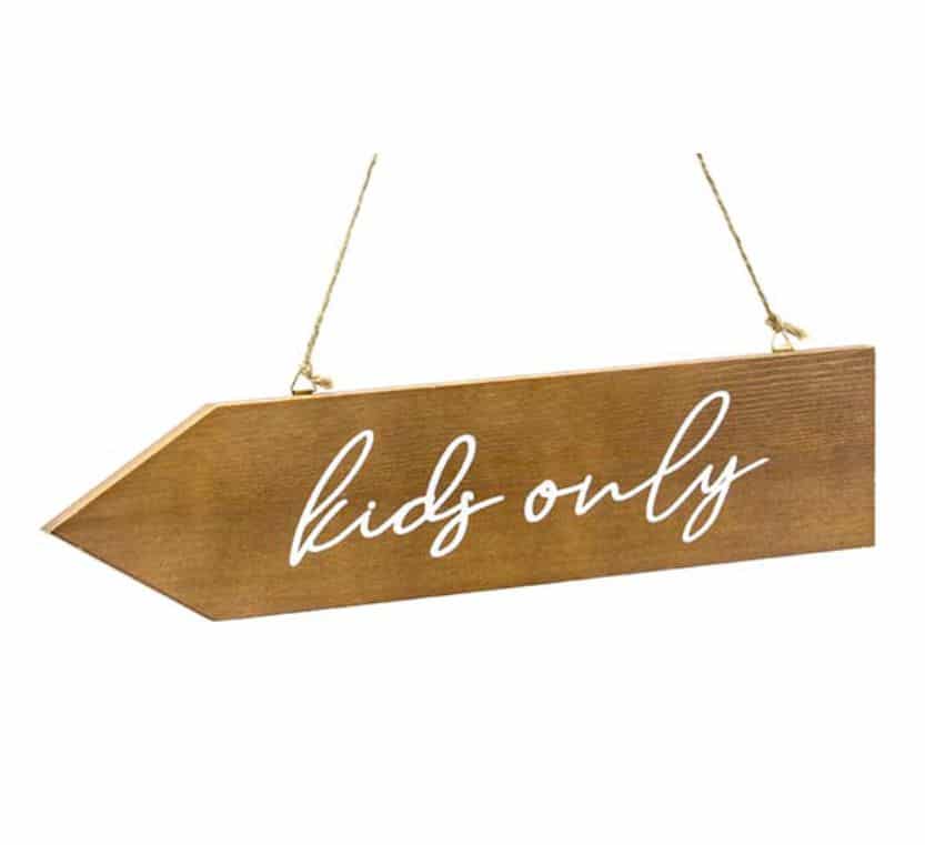 - Η ταμπέλα είναι ξύλινη και γράφει επάνω “”Kids only””
