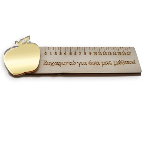 Ξύλινος διακοσμητικός χάρακας με χρυσό μήλο για να χαρίσετε στον καλύτερο Δάσκαλο και να τον ευχαριστήσετε για όλα όσα σας έμαθε!