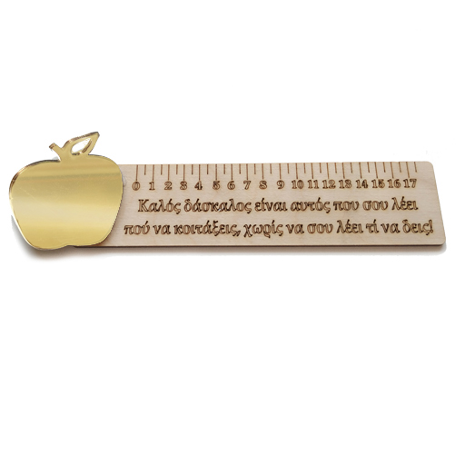 Ξύλινος διακοσμητικός χάρακας με χρυσό μήλο για να χαρίσετε στον καλύτερο Δάσκαλο και να τον ευχαριστήσετε για όλα όσα σας έμαθε!