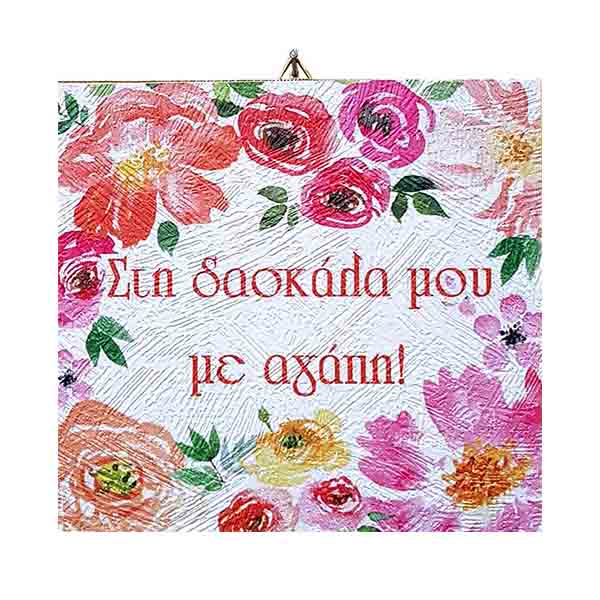 Ξύλινο καδράκι Στη δασκάλα με αγάπη (σχέδιο 1)