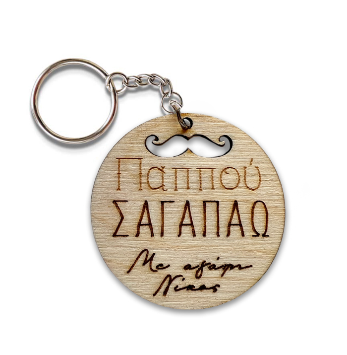 Φτιάξε το πιο γλυκό ξύλινο μπρελόκ με χαραγμένη την δική σου αφιέρωση και χάρισε το στον πολυαγαπημένο σου παππού για να το βλέπει κάθε φορά που παίρνει τα κλειδιά του και να σε νιώθει κοντά του!