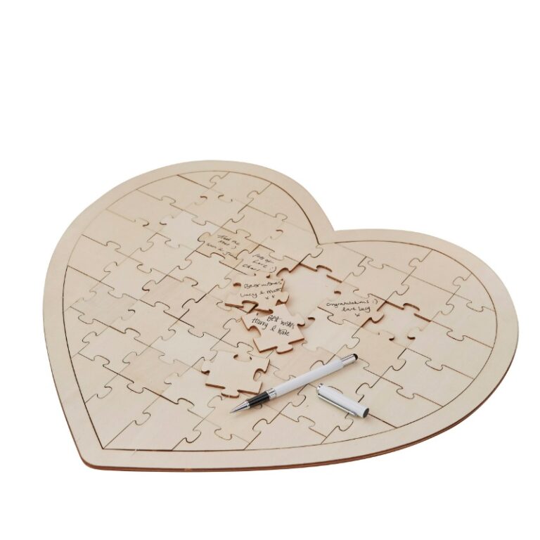 Εντυπωσιακό Παζλ Ευχών για γάμο ή βάπτιση σε σχήμα Καρδιά. Κάθε καλεσμένος αφήνει το όνομά του ή μια ευχή, συμπληρώνοντας το παζλ!