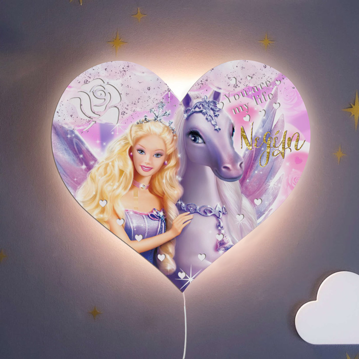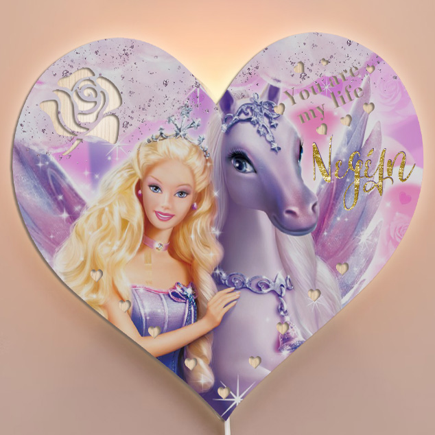 Εντυπωσιακό προσωποποιημένο ξύλινο φωτιστικό σε σχήμα καρδιάς με τη Barbie! Ένα μοναδικό δώρο για να χαρίσεις στο αγαπημένο σου πρόσωπο για να διακοσμεί το δωμάτιο!