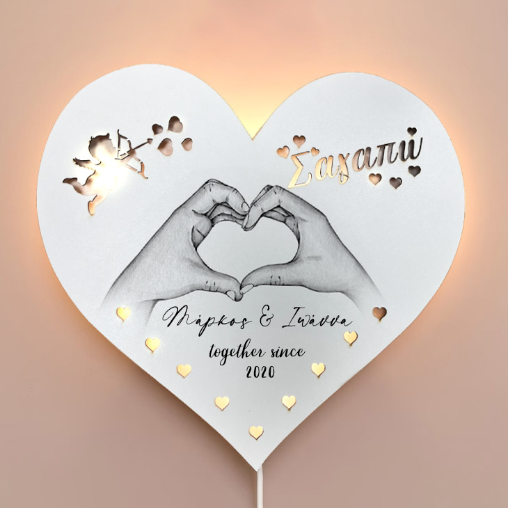Εντυπωσιακό ξύλινο φωτιστικό αγάπης σε σχήμα καρδιάς και με σχέδιο love hands ! Ένα μοναδικό δώρο για να χαρίσεις στο αγαπημένο σου πρόσωπο, που θα διακοσμεί το δωμάτιο και θα σε θυμίζει!