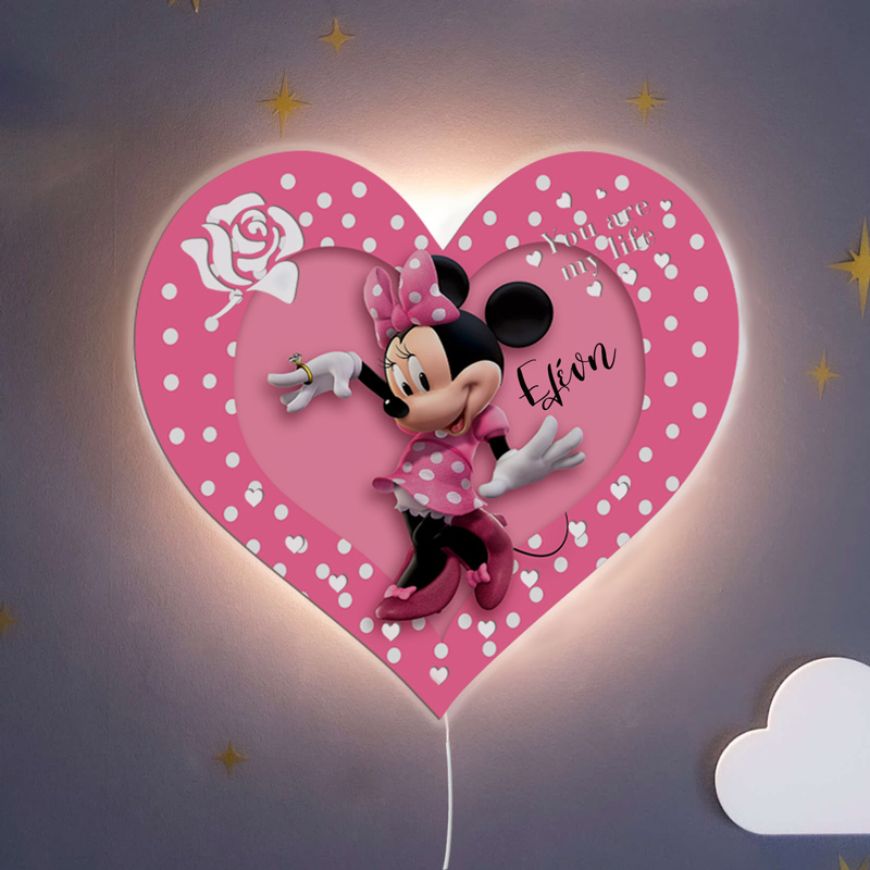 Εντυπωσιακό προσωποποιημένο ξύλινο φωτιστικό σε σχήμα καρδιάς με τη Minnie! Ένα μοναδικό δώρο για να χαρίσεις στο αγαπημένο σου πρόσωπο για να διακοσμεί το δωμάτιο!