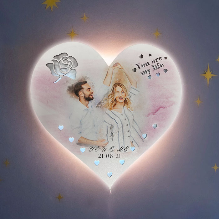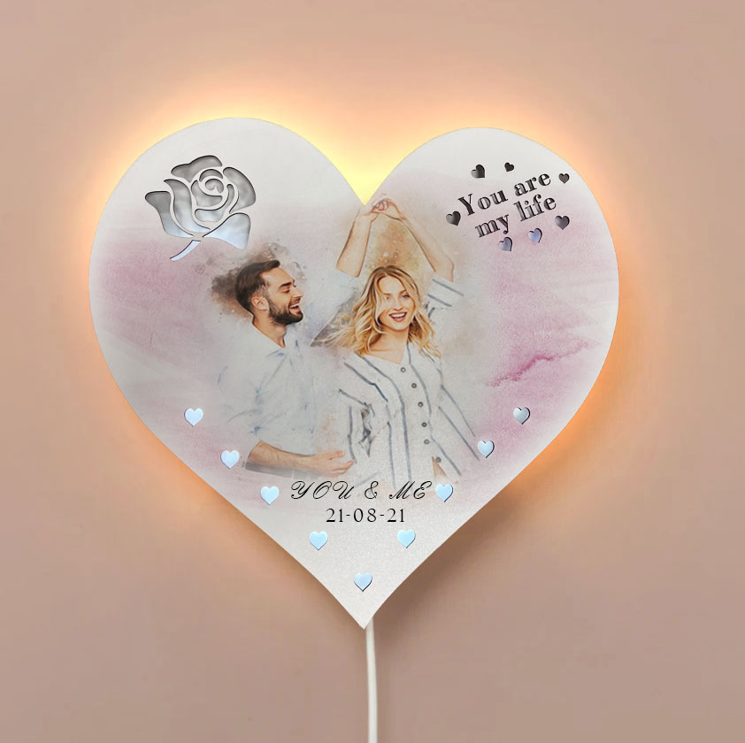 Εντυπωσιακό ξύλινο φωτιστικό αγάπης σε σχήμα καρδιάς και τη φωτογραφία σας με εφέ Watercolour! Ένα μοναδικό δώρο για να χαρίσεις στο αγαπημένο σου πρόσωπο, που θα διακοσμεί το δωμάτιο και θα σε θυμίζει!