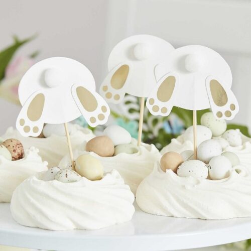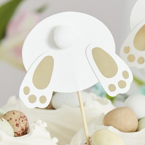 Cake Toppers με θέμα κουνελάκι με φουντωτή ουρίτσα από pom pom. Διακόσμησε εντυπωσιακά την τούρτα και τα φαγητά του γιορτινού τραπεζιού!