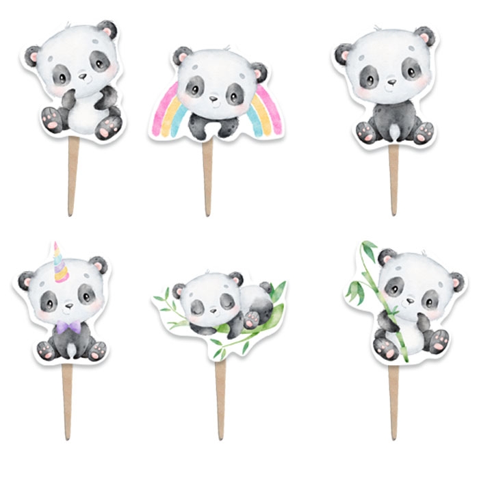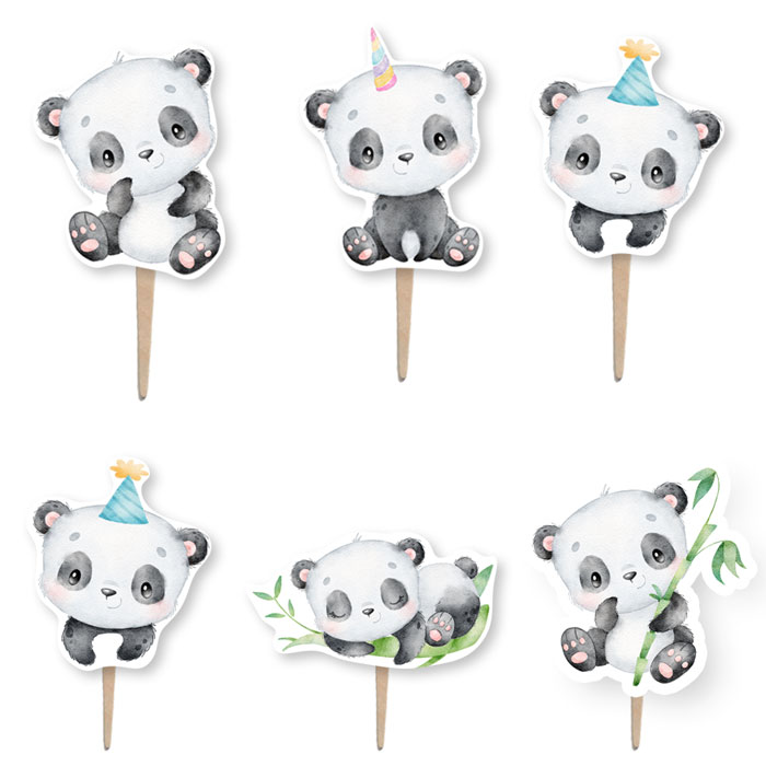 Οδοντογλυφίδες για να στολίσετε τα ζαχαρωτά και τα cupcake του μπουφέ με θέμα χαριτωμένο αρκουδάκι Panda.