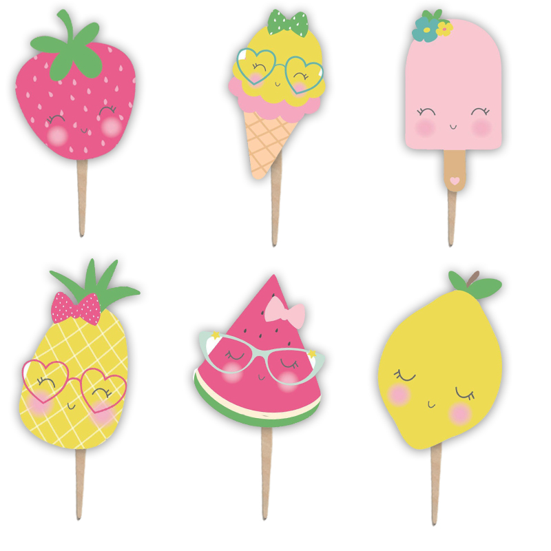 Οδοντογλυφίδες για να στολίσετε τα ζαχαρωτά και τα cupcake του μπουφέ με θέμα Tutti Frutti!