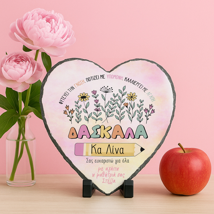 Εντυπωσιακή πέτρινη κορνίζα με αφιέρωση, ένα διαχρονικό δώρο που η δασκάλα σου θα θαυμάζει για πάντα! Σε αυτό το προϊόν φωτογραφίας, συνδυάζετε τη σύγχρονη τεχνολογία εκτύπωσης σε ένα κομμάτι φυσικής