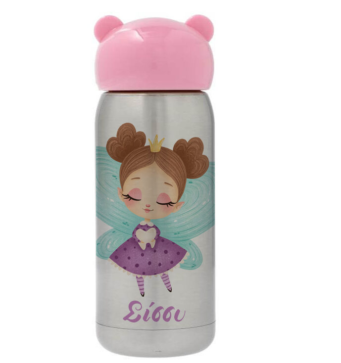 Προσωποποιημένο παγούρι με χαριτωμένη Νεραϊδούλα. Τα μικρά αυτάκια στο καπάκι που μοιάζουν με αρκουδάκι, δίνουν στο μπουκάλι μια παιχνιδιάρικη εμφάνιση. Το ιδανικό παγούρι με όνομα και σχέδιο, που θα κάνουν το παιδί σας να μην χάσει ξανά το παγούρι του!