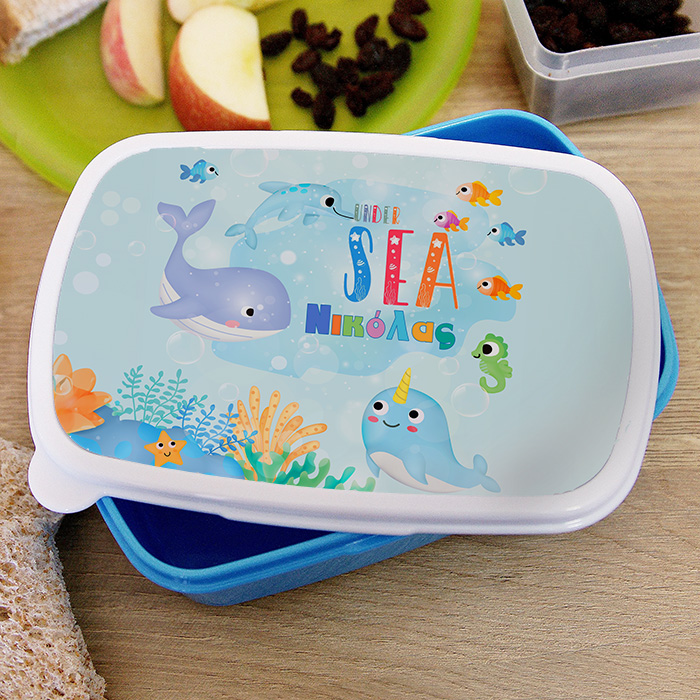Παιδικό δοχείο φαγητού με θέμα τον βυθό και εκτυπωμένο το όνομα του μικρού σας ώστε να το ξεχωρίζει στο σχολείο!