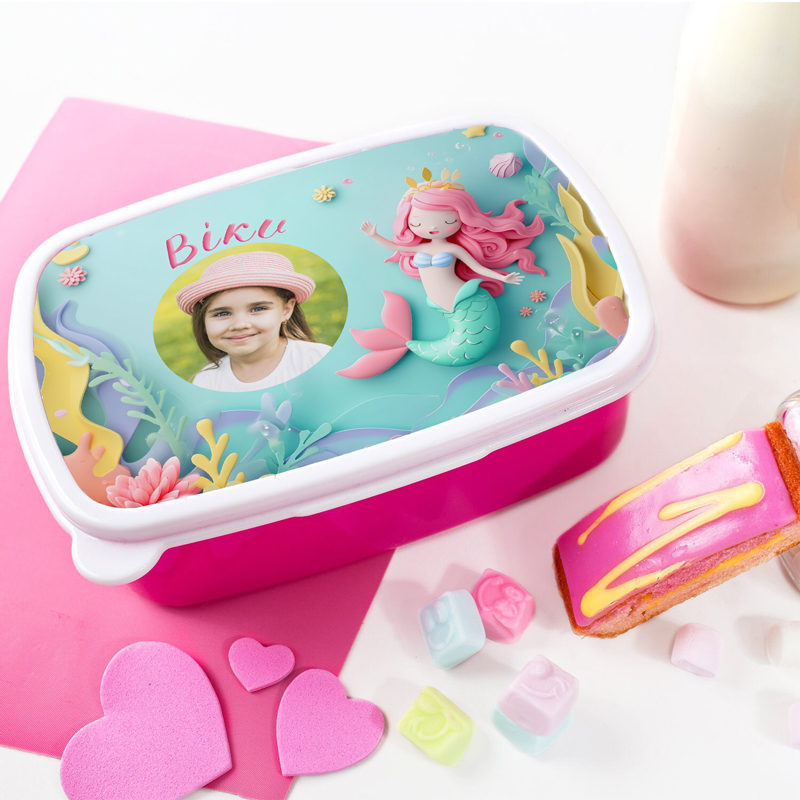 Παιδικό δοχείο φαγητού Γοργόνα με φωτογραφία με εκτυπωμένο το όνομα της μικρής σας, ώστε να το ξεχωρίζει στο σχολείο!