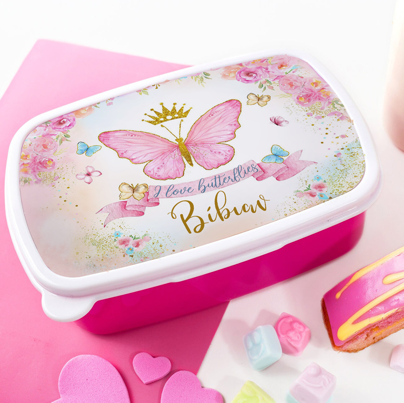 Παιδικό δοχείο φαγητού Πεταλούδα με εκτυπωμένο όνομα της μικρής σας ώστε να το ξεχωρίζει στο σχολείο!