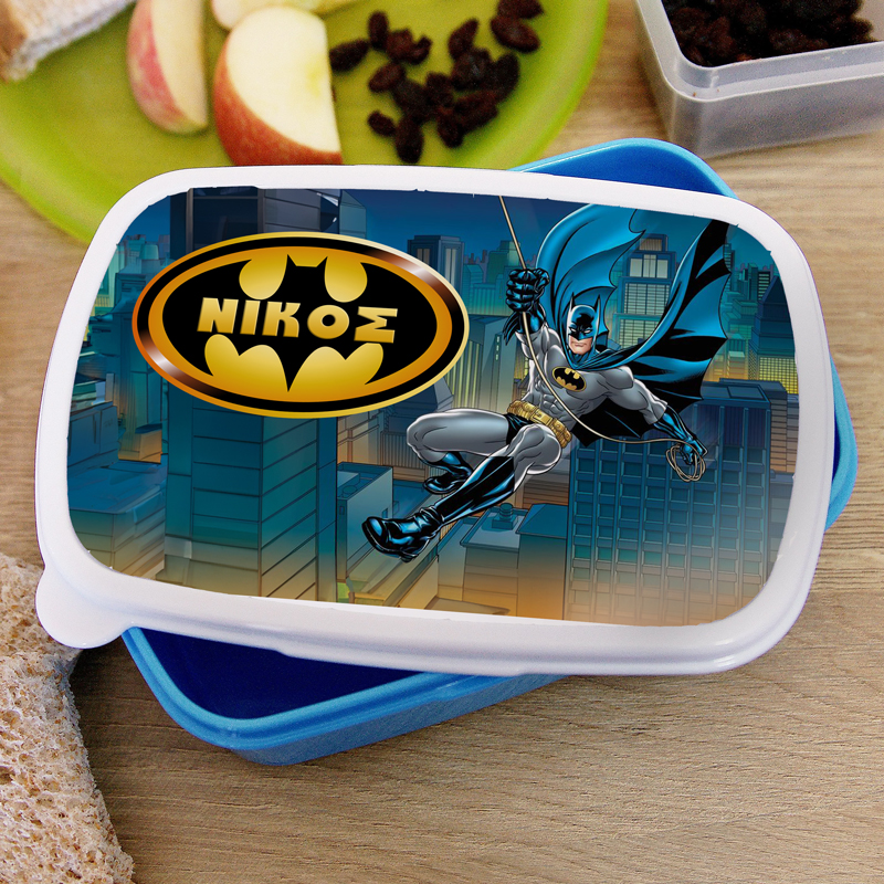 Παιδικό δοχείο φαγητού Batman με εκτυπωμένο το όνομα του μικρού σας, ώστε να το ξεχωρίζει στο σχολείο!