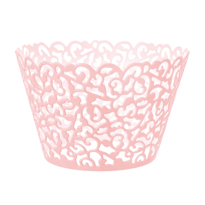 Χάρτινο περιτύλιγμα για cupcakes με ροζ διάτρητο σχέδιο σαν δαντέλα, για να γλυκάνετε τους καλεσμένους σας και να δημιουργήσετε έναν εντυπωσιακό μπουφέ!