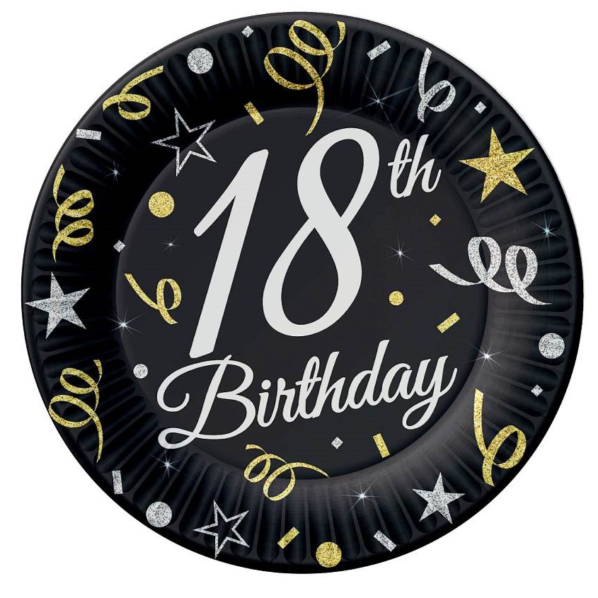 Πιάτα πάρτυ με σχέδιο κομφετί και μήνυμα happy 18th birthday!