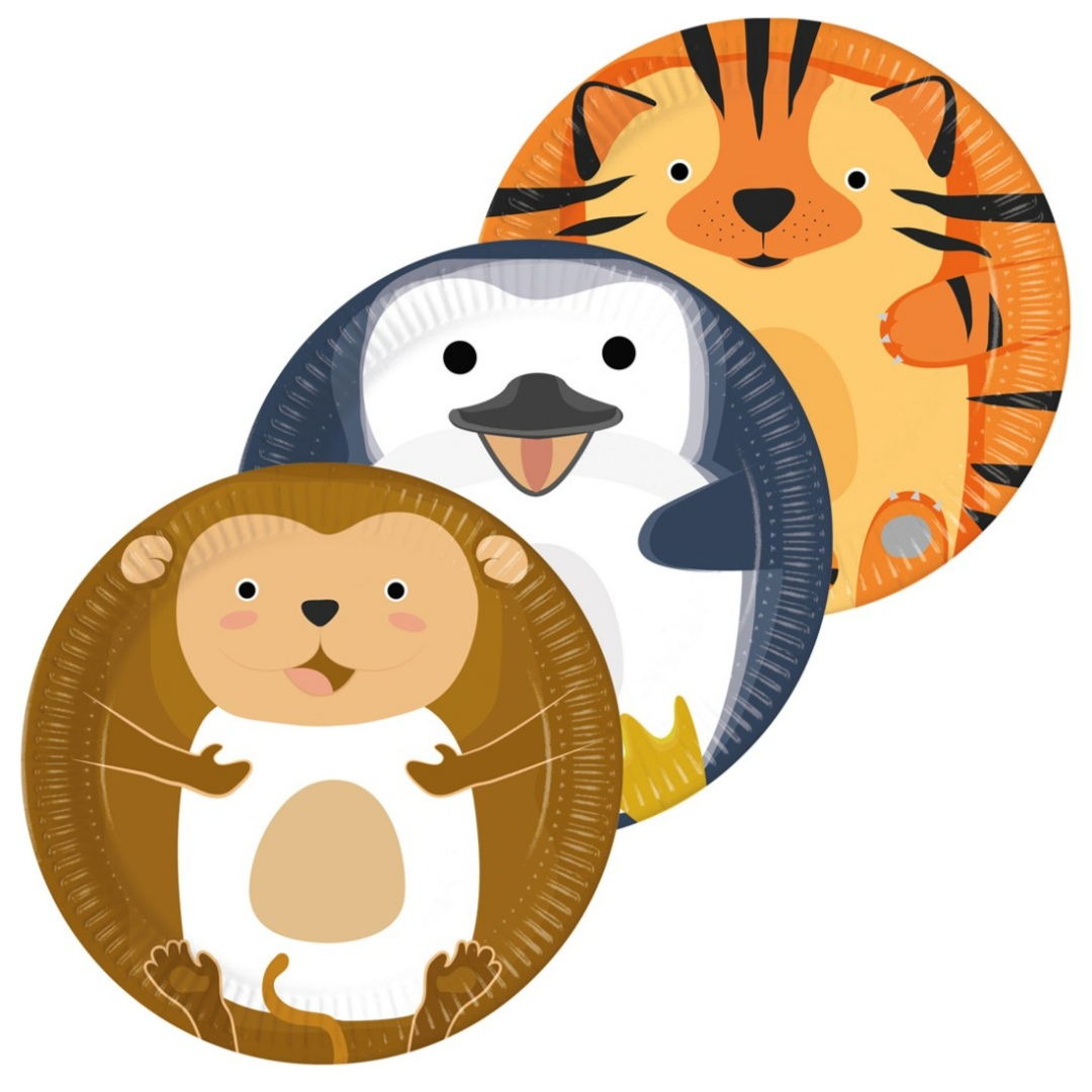 Πιάτα πάρτυ με χαριτωμένα ζωάκια της ζούγκλας σε 3 διαφορετικά σχέδια, για το μπουφέ του πάρτυ γενεθλίων!