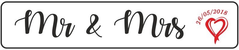 Πινακίδα αυτοκινήτου γάμου Mr & Mrs ημερομηνία (2 τεμ)