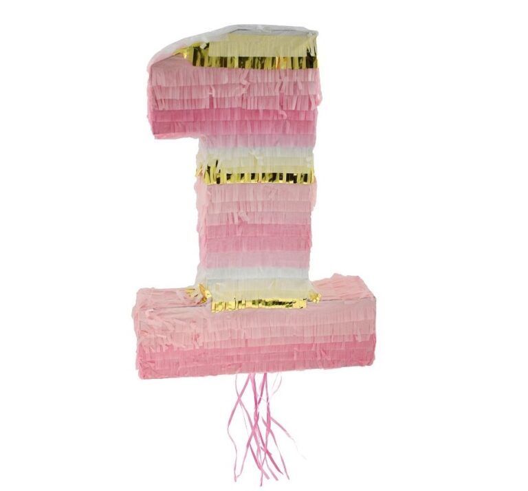 Ροζ πινιάτα με τον αριθμό 1 για το πάρτυ των πρώτων γενεθλίων. Ιδανική για παιχνίδι και διακόσμηση!