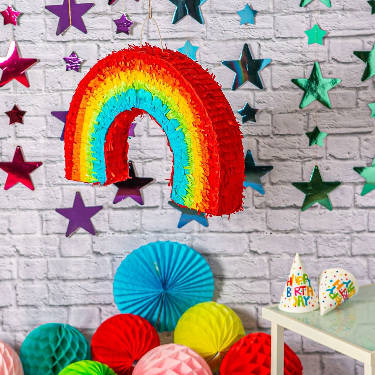 Πινιάτα αναδιπλούμενη για πάρτυ Ουράνιο Τόξο. Επιλέξτε το παιχνίδι της πινιάτας για να ξαφνιάσετε ευχάριστα τους μικρούς σας καλεσμένους!