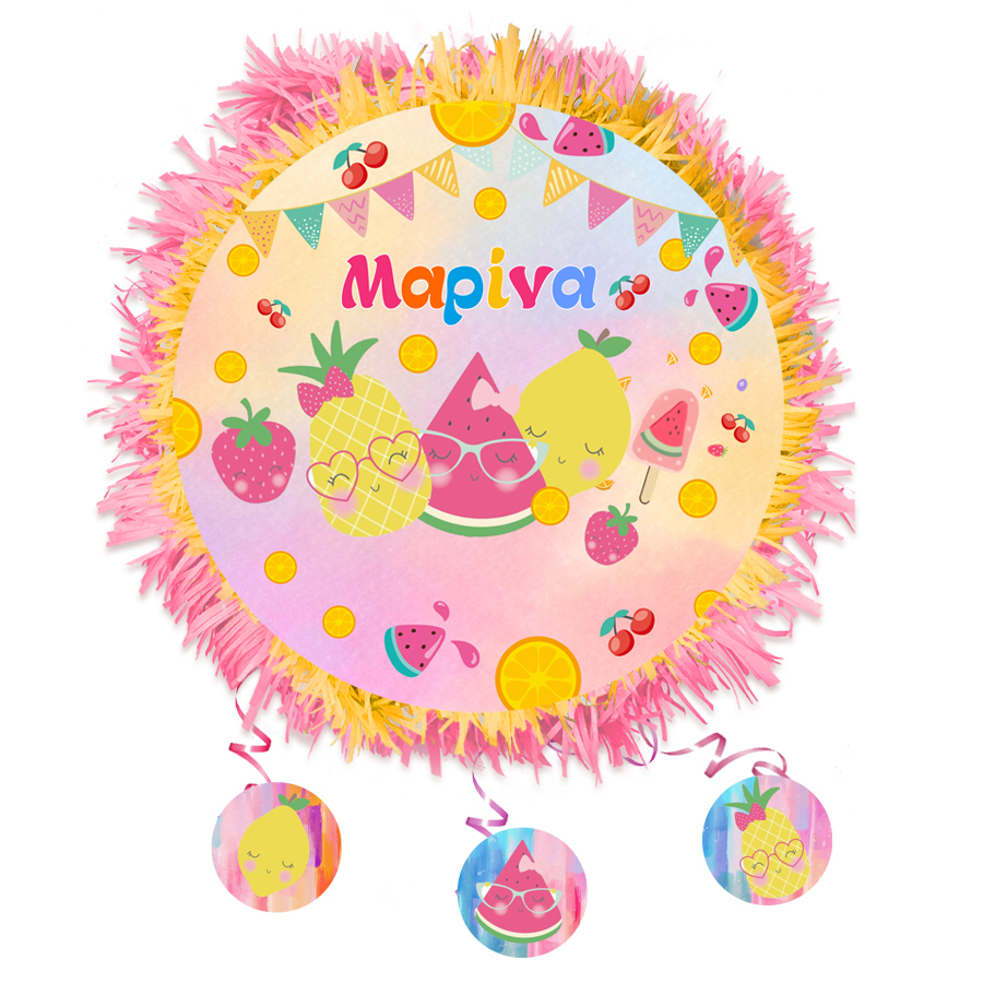 Εντυπωσιακή, προσωποποιημένη πινιάτα για το πάρτυ Tutti Frutti. Ξαφνιάστε ευχάριστα τους μικρούς καλεσμένους, με το παιχνίδι της πινιάτας! Θα κάνει το πάρτυ σας να ζωντανέψει και θα δημιουργήσει μαγικές αναμνήσεις!